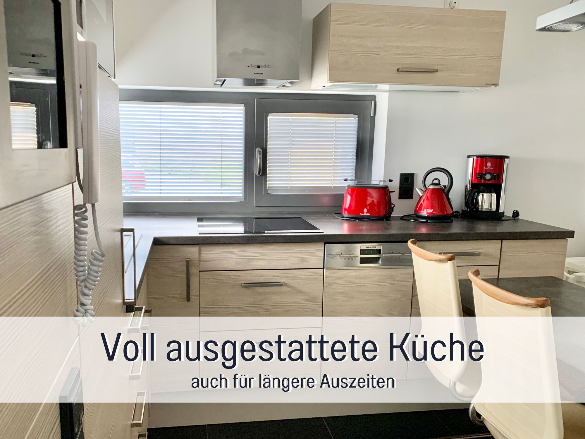 • Voll ausgestattete Küche (Ceranfeld, Backofen, Geschirrspüler)