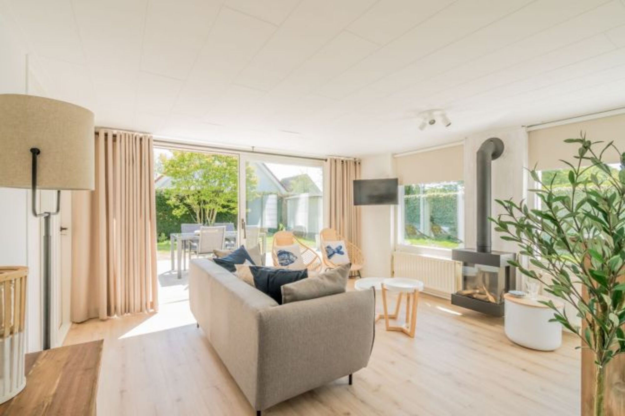 Das helle, besonders geschmackvoll eingerichtete Wohnzimmer hat eine komfortable Sitzecke mit einem gemütlichen Gaskamin. Es gibt gratis WLAN und SMART TV, wo Sie NETFLIX (über Ihr eigenes Konto) und eine Vielzahl anderer Sender empfangen können. Über die große Schiebetür erreichen Sie die sonnige Terrasse mit einer Gartengruppe für 4 Personen. Hier können Sie den Tag mit einem Frühstück in der Sonne beginnen und mit einem guten Glas Wein am Grill abschließen. Auf der zweiten Terrasse, mit gemütlichem Lounge-Set, können Sie nach einem Tag am Strand noch von der „Zeeuwse“ Landluft genießen.