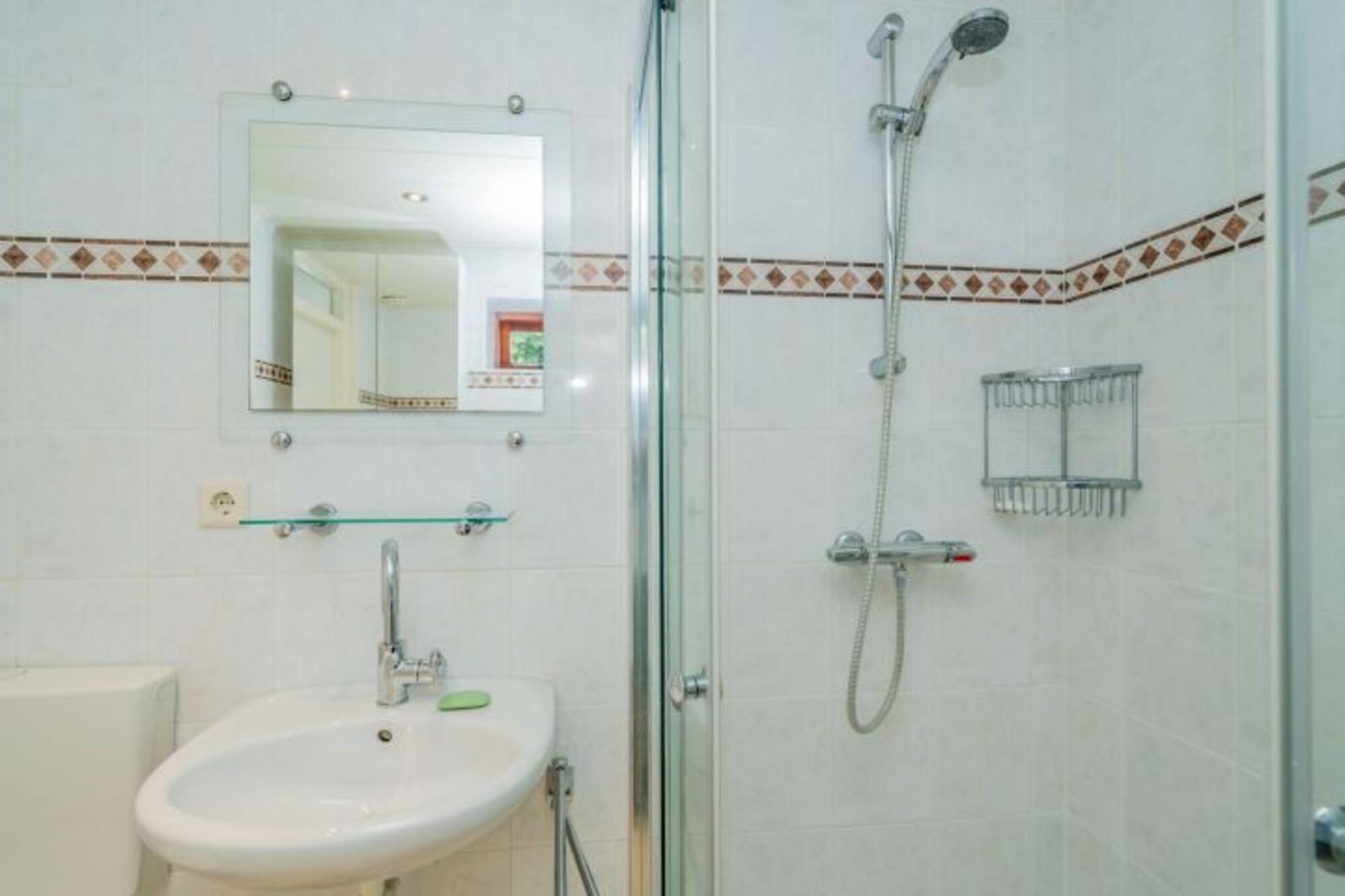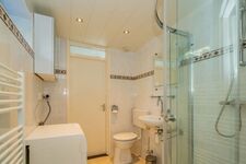 Im Erdgeschoss befindet sich das Hauptschlafzimmer, das über das Wohnzimmer zugänglich ist. Es gibt ausreichend Schränke und die beiden Boxspringbetten (80x200) garantieren einen vorzüglichen Schlafkomfort. Das Badezimmer ist mit einer Dusche, einem Waschbecken, einer Toilette und einer Waschmaschine ausgestattet.