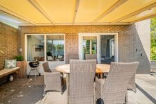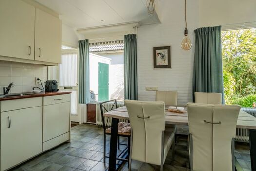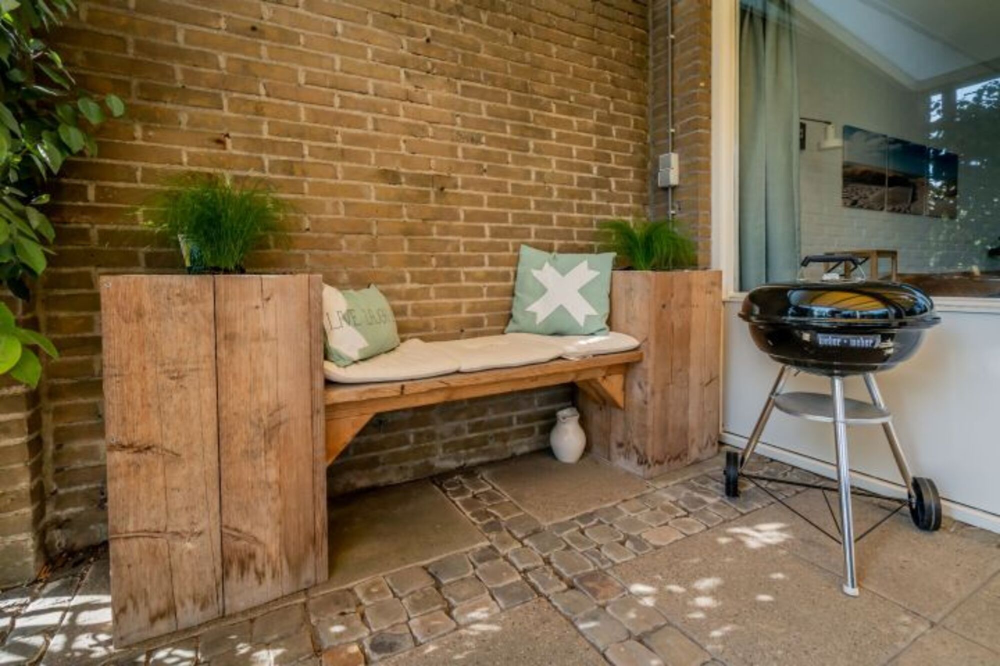 Das geräumige, helle Wohnzimmer ist geschmackvoll eingerichtet und verfügt über eine gemütliche Sitzecke, in der Sie fernsehen (digital, mit vielen deutschen Sendern) oder ein Buch lesen können, während das Feuer des zentralen Kamins für Wärme und zusätzliche Atmosphäre sorgt. Auf der anderen Seite des Kamins befinden sich der Essbereich und die offene Küche. Vom Essbereich aus gelangen Sie durch die Schiebetür in den geräumigen Garten, der viel Privatsphäre bietet. Auf der gemütlichen, überdachten Terrasse, direkt neben dem Haus, können Sie mit sechs Personen am ovalen Esstisch sitzen, der mit sehr bequemen Stühlen ausgestattet ist. Der Grill und das Lounge-Sofa vervollständigen das ultimative Outdoor-Feeling, das Sie während Ihres Urlaubs erleben werden.