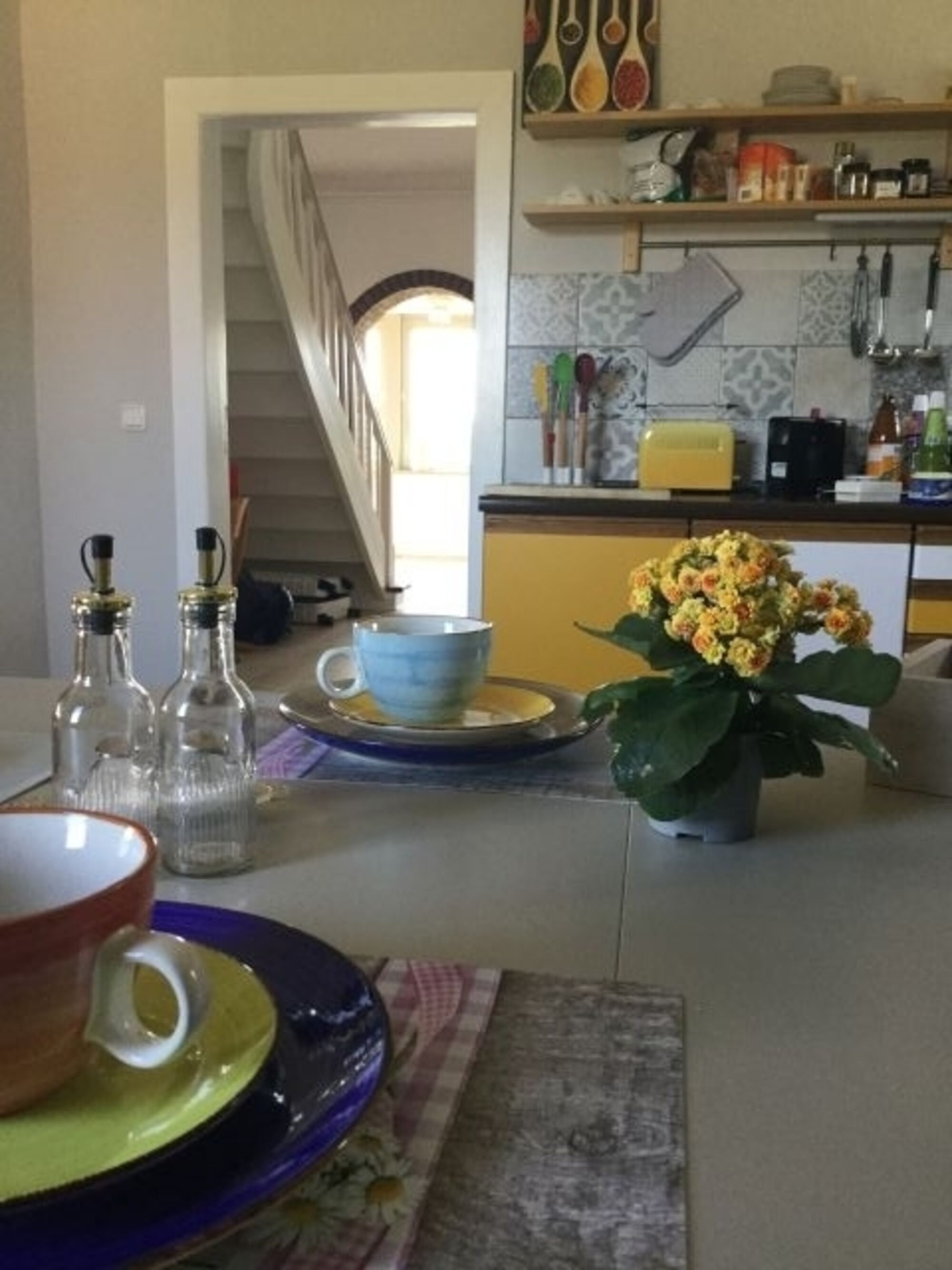 4-Platten Herd, Cerankochfeld, Kühlschrank mit Gefrierfach, Nespresso-Automat, Korkenzieher / Flaschenöffner, Gewürze (Salz, Pfeffer, Zucker), Öl / Essig, Geschirrhandtücher, Mülltüten, Essplatz in der Küche