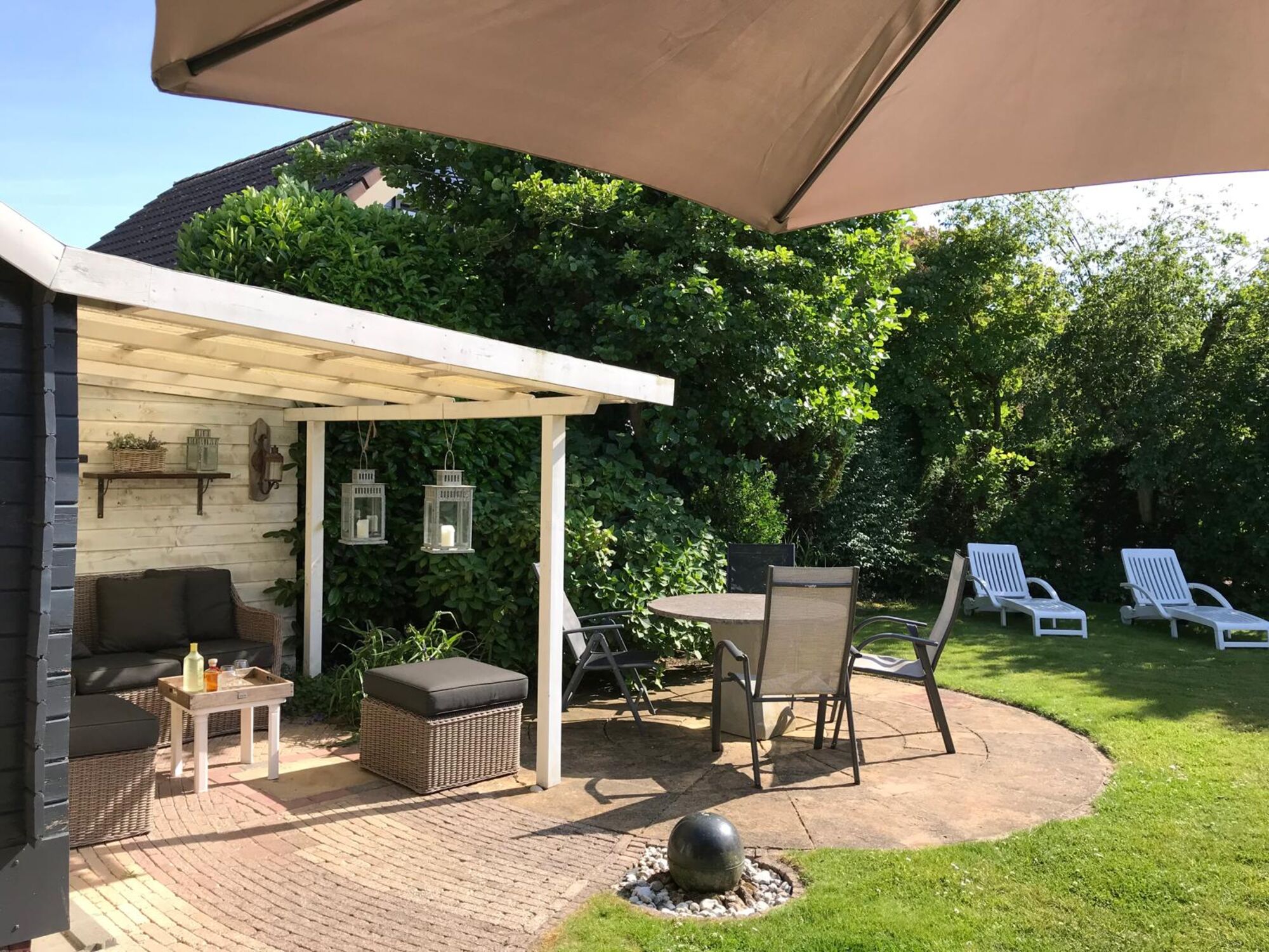 Gepflegtes Ferienhaus Strandmeeuwe, schöner umzäunter Garten mit viel privater Atmosphäre