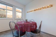Die 60 qm Ferienwohnung befindet sich im Erdgeschoss und ist für bis zu vier Personen geeignet. Die Wohnung verfügt über ein gemütliche Wohnzimmer mit Sitzecke (die Couch kann als Aufbettung für eine Person genutzt werden), TV und Essecke sowie ein Schlafzimmer mit Doppelbett und ein Schlafzimmer mit einem Etagenbett (auch für Erwachsene geeignet). Die separate Küche ist mit einem Backofen, Spülmaschine, Mikrowelle und Kühlschrank ausgestattet.