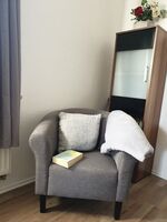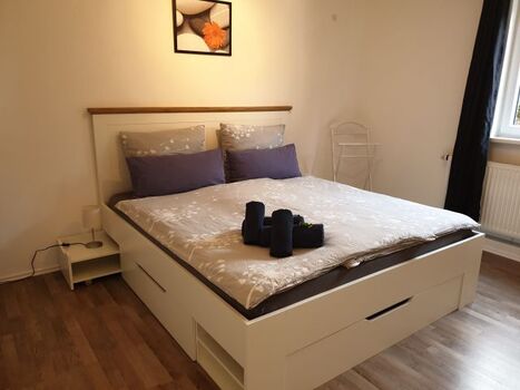 Unsere Ferienwohnung verfügt über einen separaten Eingang, direkt im eingezäunten Garten eines Mehrfamilienhauses. Im Garten können Sie verweilen, grillen und die schattige Terrasse nutzen. Die Ferienwohnung hat ein Schlafzimmer mit Doppelbett und genügend Stauraum, ein Wohnzimmer mit Schlafcouch (170 x 220 cm) und TV. Die Küche ist mit allem Notwendigem ( Geschirr, Töpfe, Koch- und Backutensilien, Besteck, Kaffeemaschine, Toaster, Wasserkocher, Mikrowelle, Backofen, Gewürze, ...) gut ausgestattet und hat eine gemütliche Eckbank zum Essen. Bad und WC sind getrennt. Das Bad hat eine Dusche mit Glaskabine, Waschbecken und Waschmaschine. Das WC ist direkt nebenan. Für kleine Kinder gibt es eine Spielzeugkiste, Kindergeschirr, Hochstuhl, Babybadewanne, Wickelunterlage, Reisebett mit Matratze, Gartenspielzeug und ein Flaschenwärmer. Größere Kinder können sich die Abende mit diversen Brettspielen, Konsolenspielen und Netflix die Zeit vertreiben.