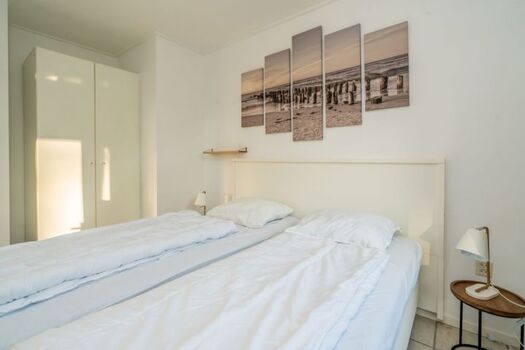 Es gibt zwei Schlafzimmer, beide sind mit zwei Einzel Boxspringbetten ausgestattet. Es gibt ausreichend Schränke.