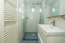 Durch den Flur gelangen Sie auch in das Badezimmer mit Dusche und Waschbecken. Der Bungalow hat eine separate Toilette.