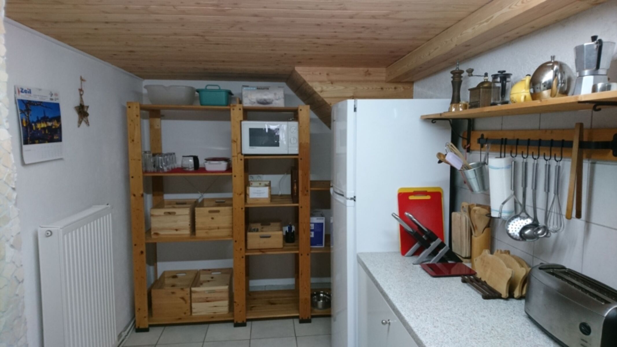 Im Erdgeschoss befinden sich ein Wohnraum und eine geräumige Küche mit zwei Küchenzeilen.