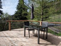 Überdachter Balkon, Terrasse, Spiel- und Liegewiese, Gartenmöbel, Kohlegrill