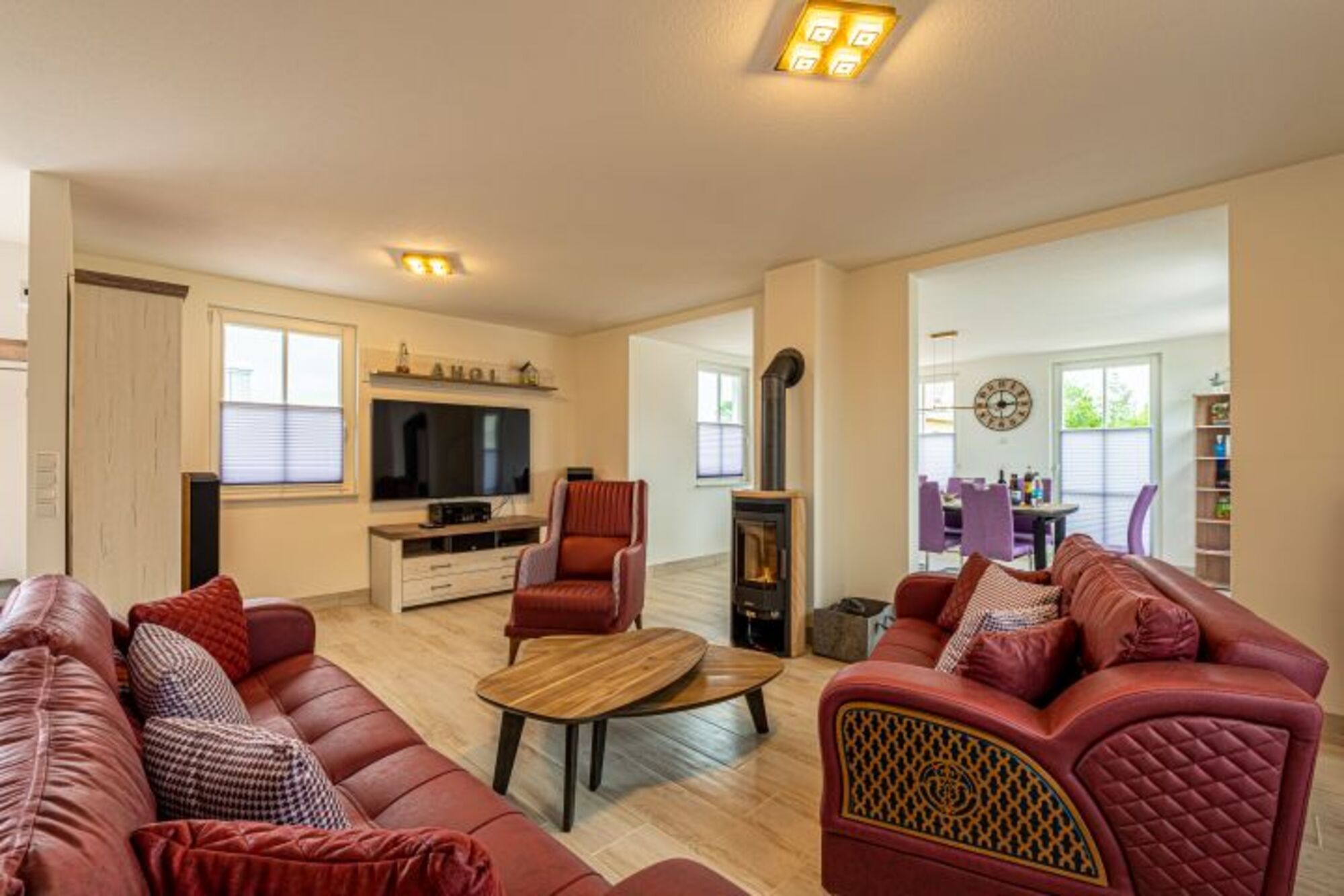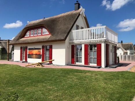 Reetdachhaus mit Sauna und Kaminofen, 2019 neu erbaut. Kleiner Wasserblick aus der zweiten Häuserreihe. Nichtraucherhaus. Gehobene Ausstattung mit moderner, geschmackvoller Einrichtung. Kaffeevollautomat und Filterkaffeemaschine. 2 Schlafzimmer, 2 Bäder. Kostenloser Internetzugang (W-Lan) mit unbegrenztem Datenvolumen, Fußbodenheizung. Waschmaschine/Trockner. Terrasse mit Sitzmöbeln, Strandkorb und Hängematte, Sonnensegel, Verandaterrasse, Elektrogrill, optional Nutzung Außenwhirlpool. 2 Pkw-Stellplätze am Haus mit Lademöglichkeit für E-Autos, Kinderspielecke. Verschaffen Sie sich einen Überblick mit einem 360° Rundgang. Einfach folgenden Link kopieren: