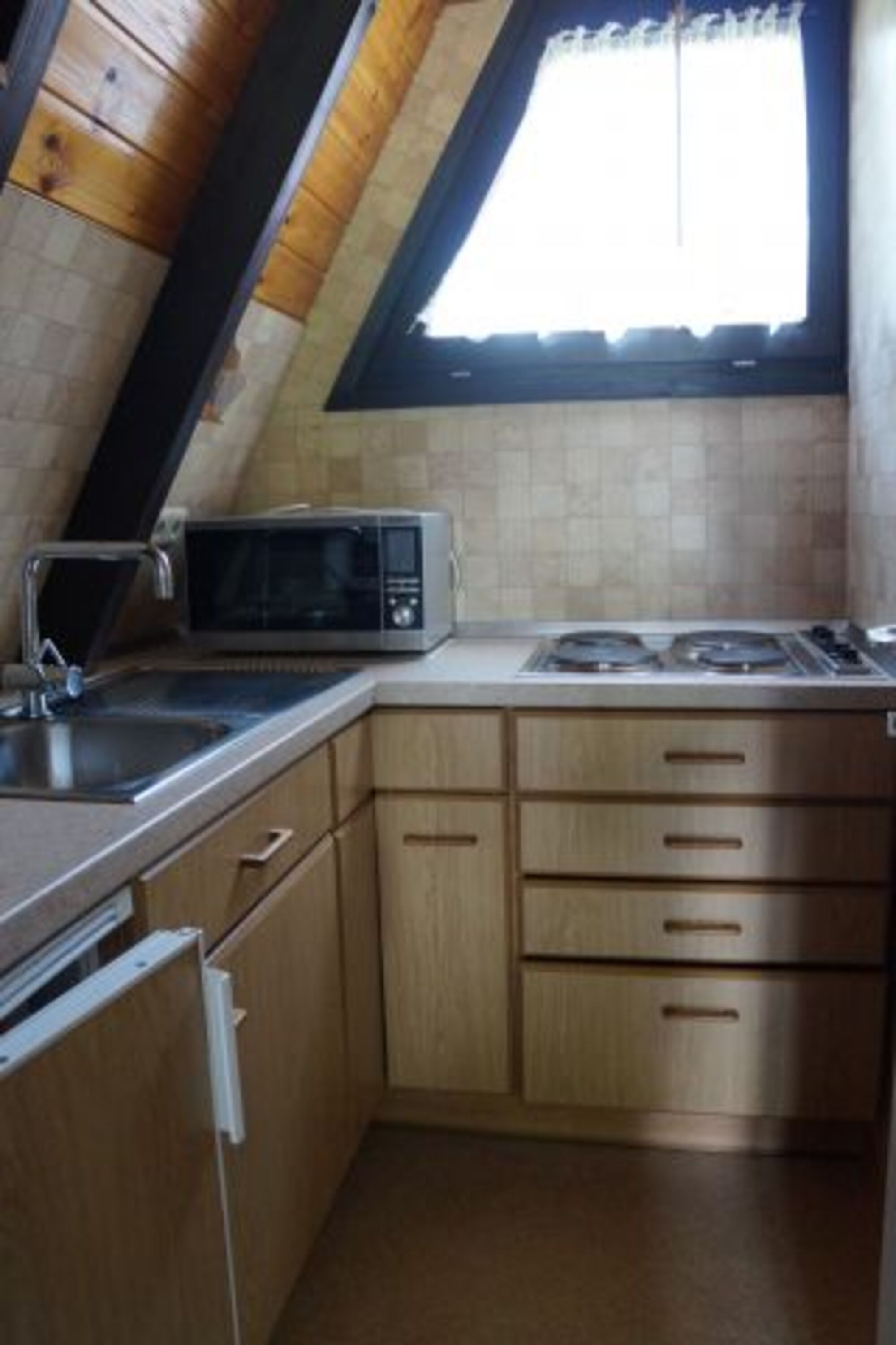 Kleine Einbauküche mit Kochfeld, Mikro-Welle mit Grill, Kaffeemaschine, Wasserkocher, Toaster,