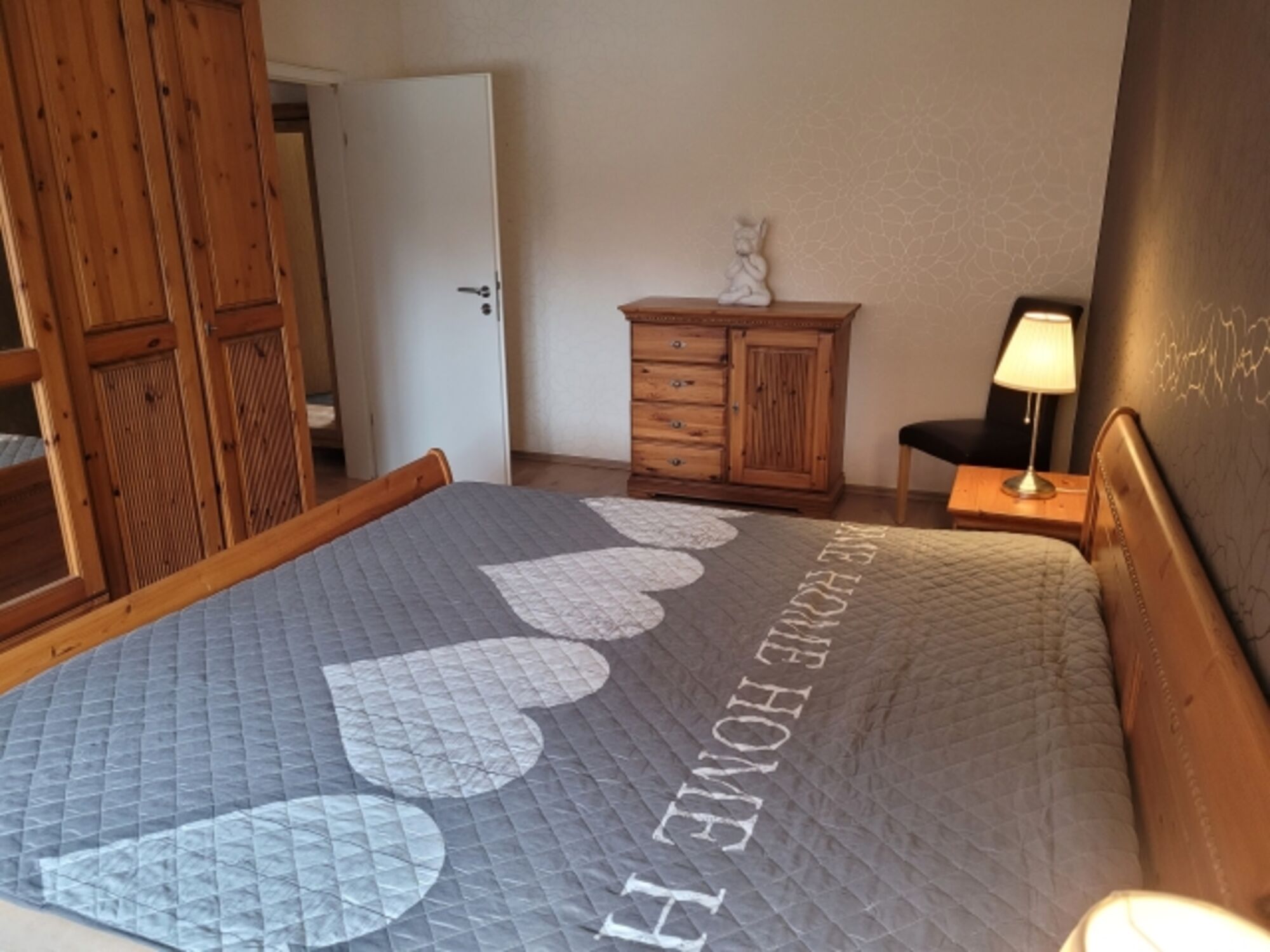 In der Wohnung befinden sich zwei Schlafzimmer. Ferner modernes Tageslichtbad mit WC, Badewanne und bodengleicher Dusche. Aus hygienischen Gründen sind in der Wohnung alle Fußböden wischbar und die Sofas werden mit Überdecken ausgestattet.