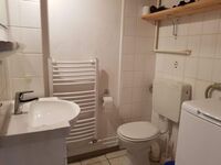 Kleines Bad, hier ist die Waschmaschine aufgestellt Waschbecken
