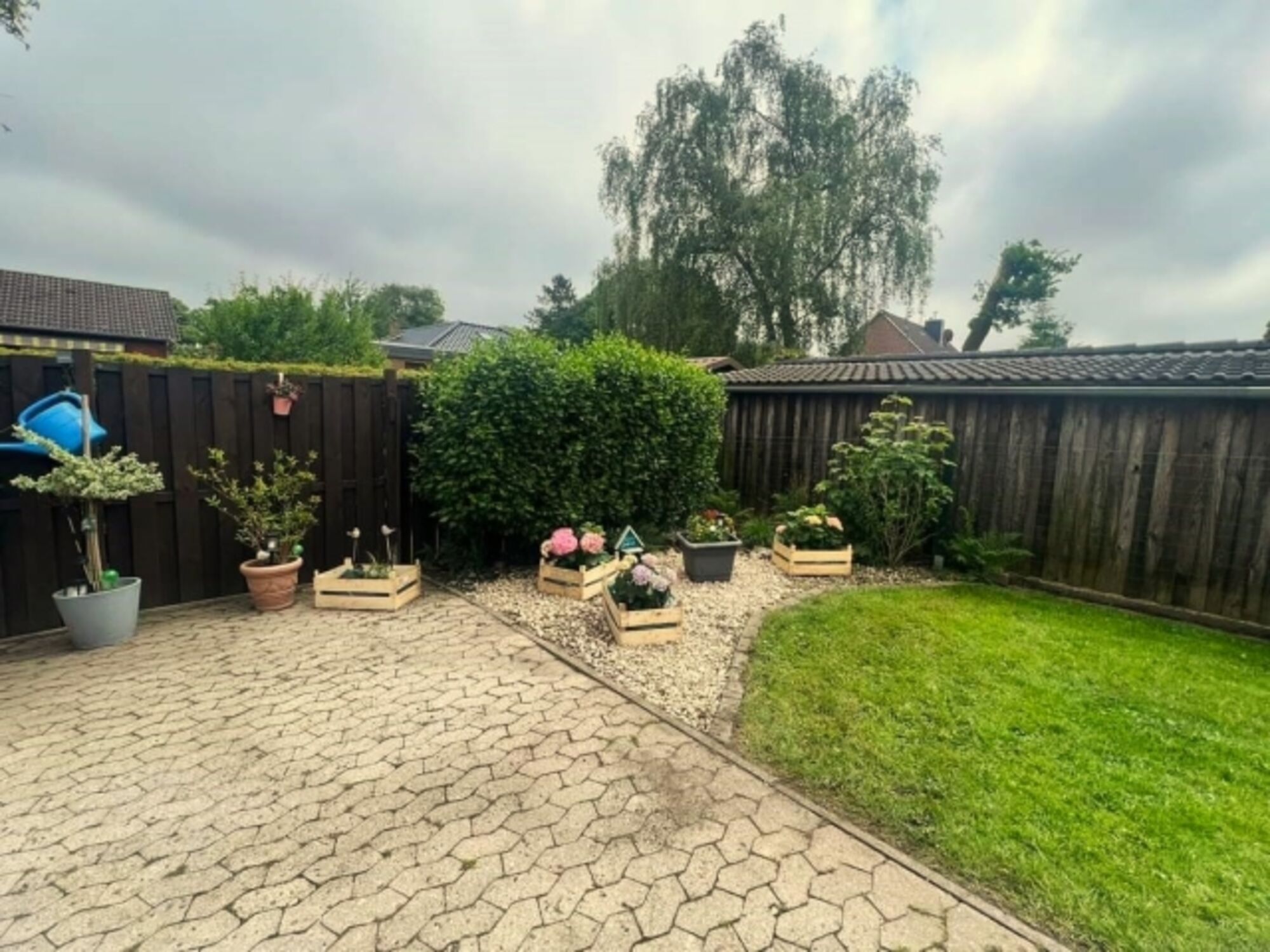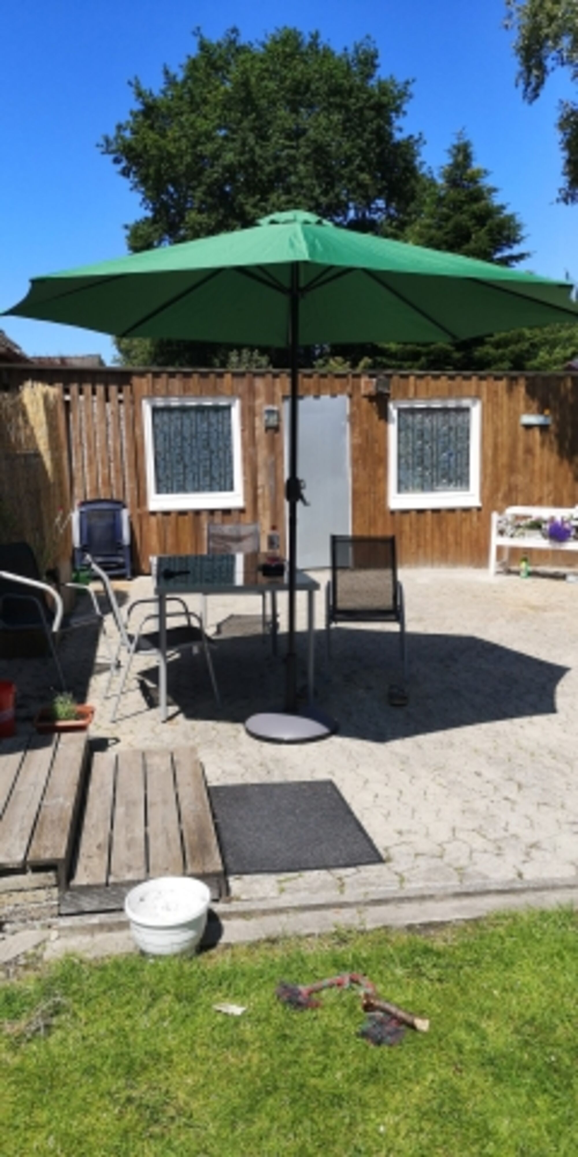 - eigener eingezäunter Garten mit großer Terrasse (mit Holzkohlegrill und Gartenmöbeln)