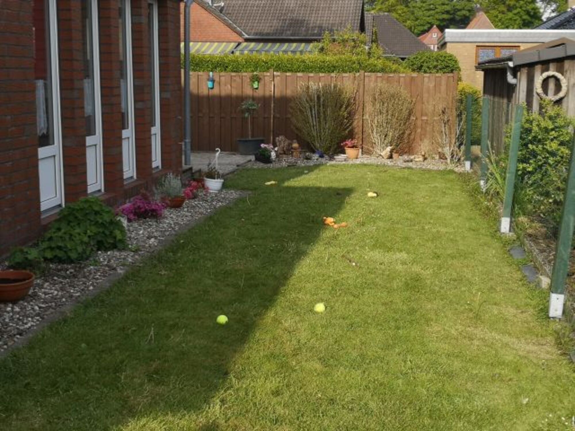 Sie lieben es den Vögeln zuzuhören, an der frischen Luft zu sitzen, während Ihr Vierbeiner seine Freude hat? Das kann man wunderbar auf unserer großen Außenterrasse mit "Rasenrennbahn" für den Hund.