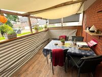 Es regnet (in Ostfriesland regnet es nicht :-))? Kein Problem, denn es gibt auch eine überdachte Loggia. Hier darf man auch eine Zigarette bei Bedarf genießen.