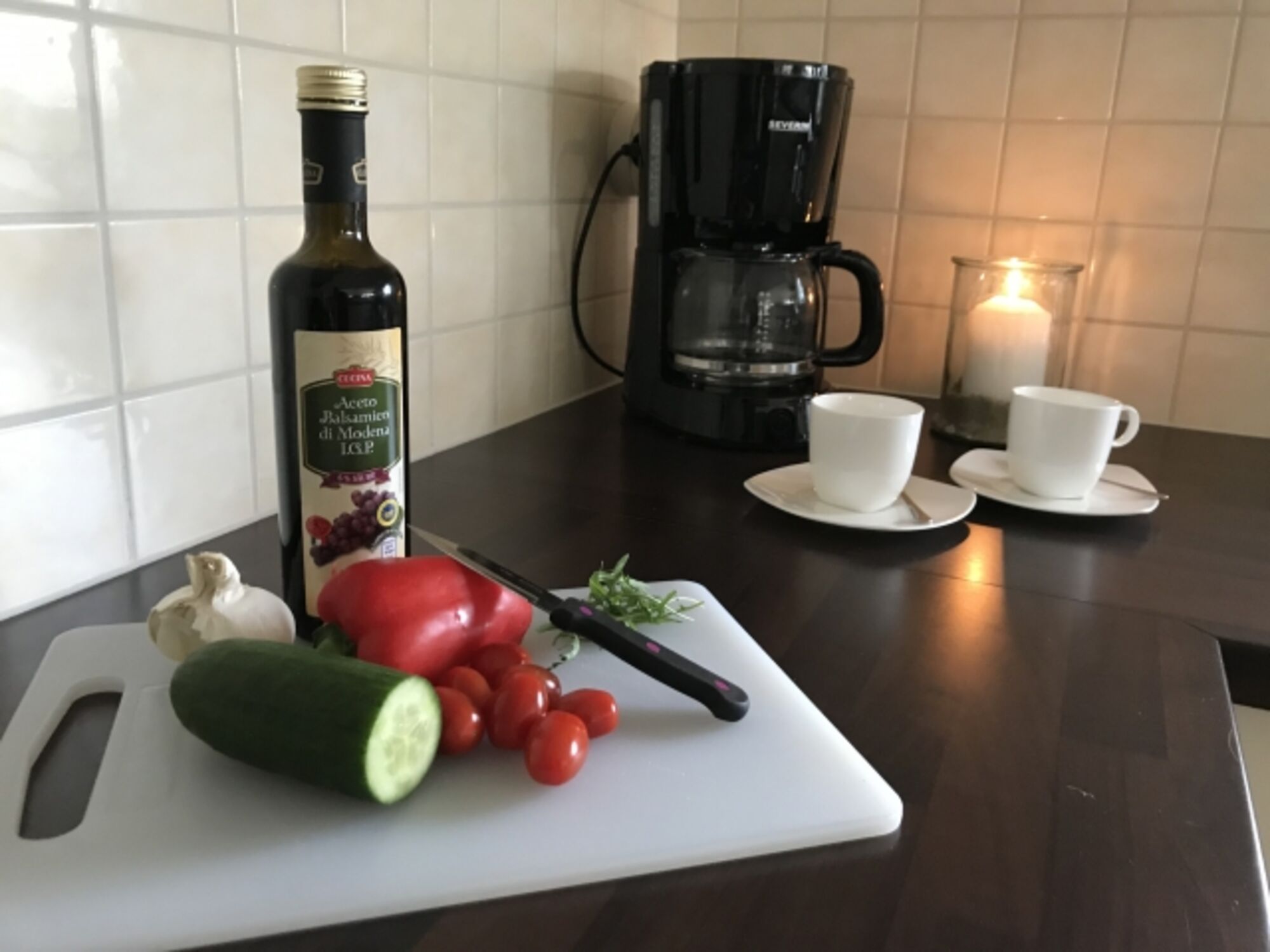 Die lediglich durch eine Theke vom Wohn-Essbereich getrennte, vollausgestattete Küche ist eingerichtet mit Gasherd, Backofen mit Mikrowelle, Kühlschrank, Gefrierschrank, Spülmaschine, Kaffeemachine, Fondue, Senseo, Racelettegeräte …. . Es wir Ihnen hier an nichts fehlen.