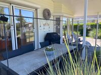 Der Außenbereich verfügt über ein Gartenhaus mit Erweiterung, in dem für unsere Gäste 2 Fahrräder zur freien Verwendung zur Verfügung stehen. Hier können auch die mitgebrachten Fahrräder und anderes Equipment sicher abgestellt werden. Die überdachte Veranda ist mit einem Bankiraiholzboden, großen Tisch und 6 Stühlen ausgestattet. Sollte Besuch vorbeischauen, sind in dem Gartenhaus noch weitere Stühle vorhanden. Die Veranda ist mit einem gläsernen Windfang ausgestattet.