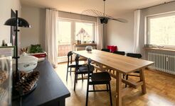 Zur Verfügung steht euch eine komplett ausgestattete Wohnung. Die Küche ist sogar zum Backen geeignet (Mixer, Backformen, usw.) Für "Kochmuffel" reicht wahrscheinlich schon der gefüllte Kaffeevollautomat ;) An kalten Abenden gemeinsam am großen Wohnzimmertisch essen oder Gemeinschaftsspiele spielen oder bei schönem Wetter auf dem Balkon mit Bergblick Frühstücken. Wie ihr wollt:)