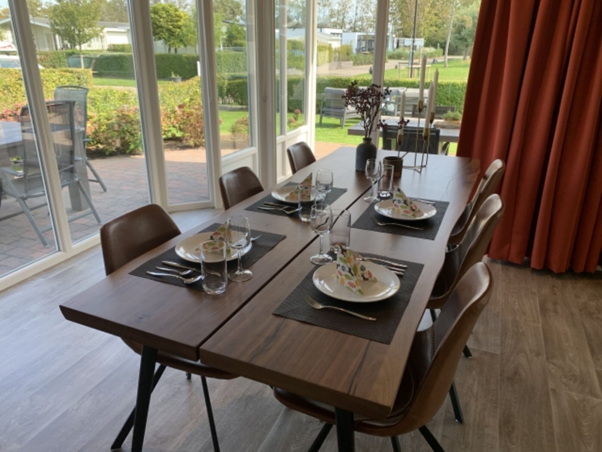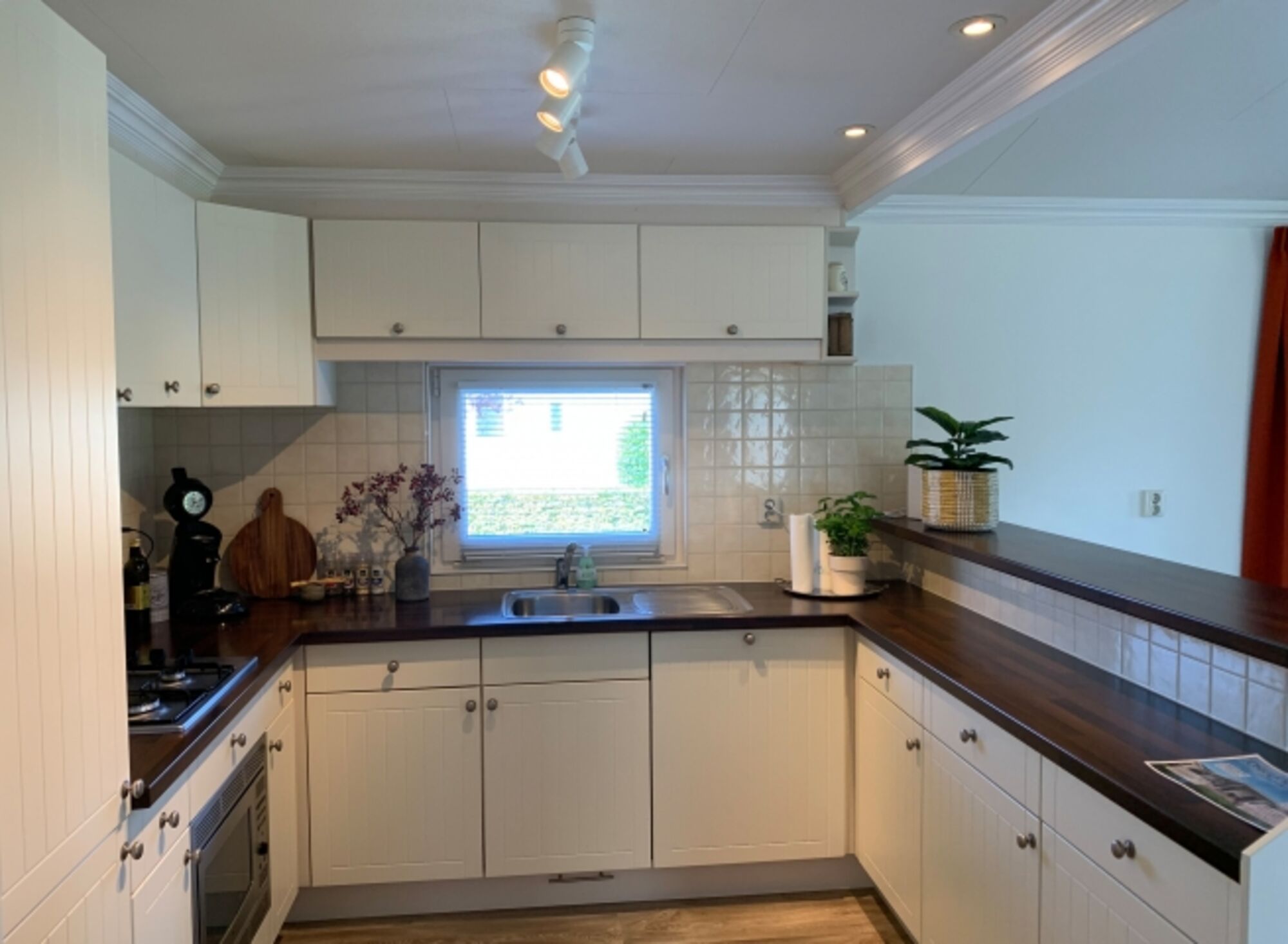 Unser Chalet verfügt über eine großzügig eingerichtete Küche mit einer Theke. Natürlich gibt es auch einen großen Essbereich. Hier ermöglichen Ihnen große Fenster an zwei Seiten einen wunderschönen Blick auf die Terrasse und den Garten. Direkt nebenan finden Sie das geschmackvoll eingerichtete Wohnzimmer mit bequemen Möbeln und natürlich auch TV. Das Haus verfügt über ein Bad mit Dusche und WC, sowie über ein zusätzliches Gäste-WC. Weiterhin gibt es einen kleinen Abstellraum, indem Sie eine Waschmaschine finden, die für Sie natürlich kostenlos zur Verfügung steht.