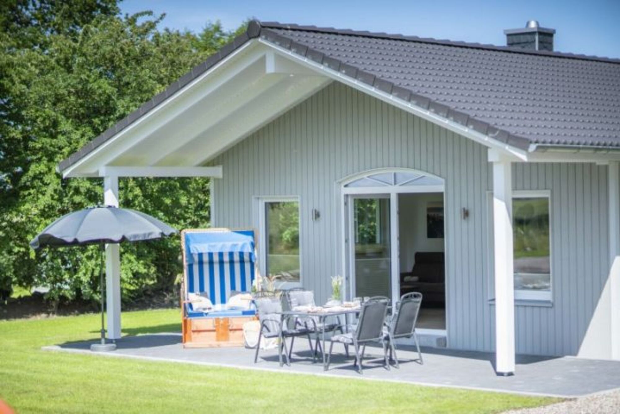 Liegewiese, Strandkorb, Gartenmöbel, Kohlegrill, Überdachte Terrasse (mobil)