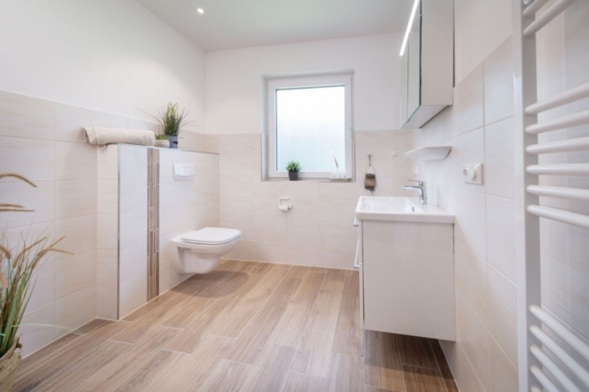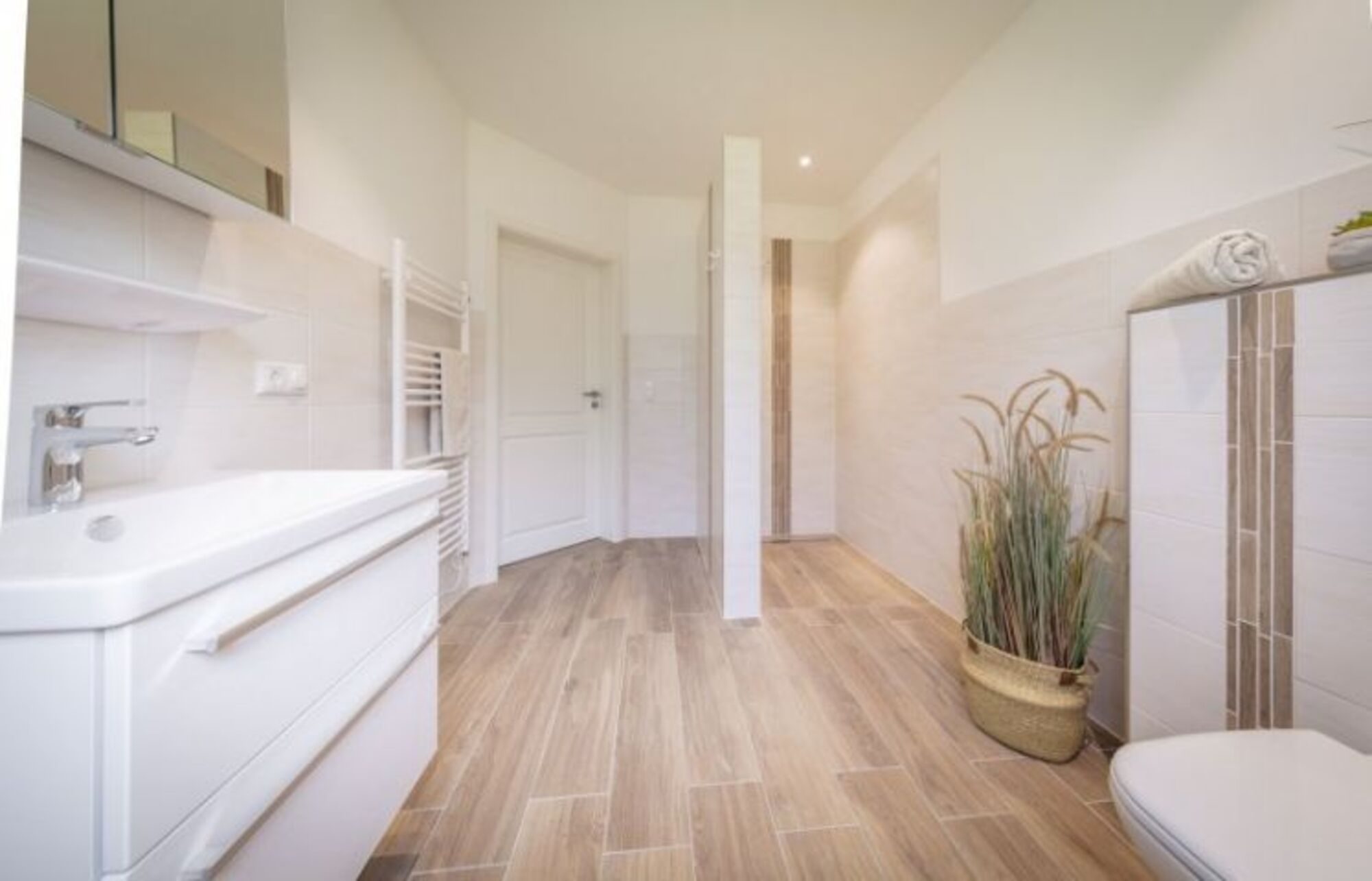 Abgerundet wird die Ausstattung durch ein komfortables Duschbad und die großzügige Terrasse zum Chillen, Sonnen und Frühstücken.