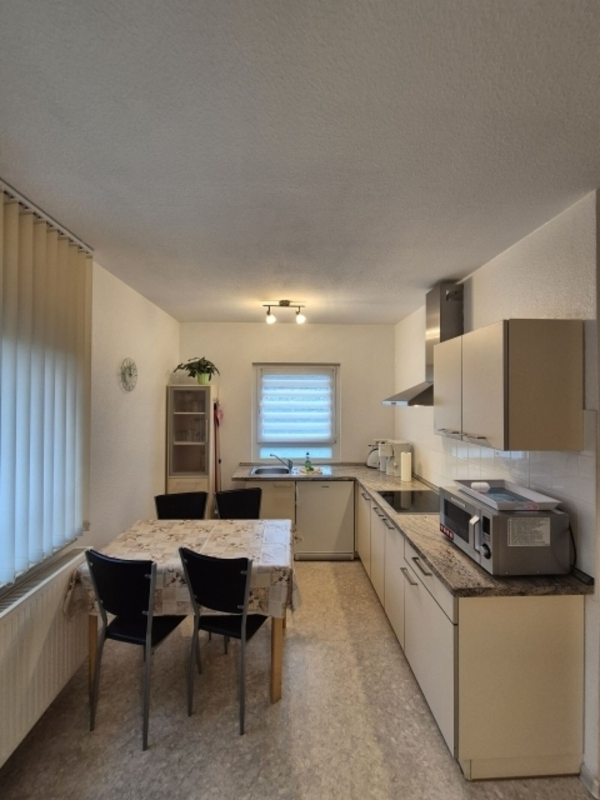 Cerankochfeld, Dunstabzugshaube, Korkenzieher / Flaschenöffner, Geschirrhandtücher, Essplatz in der Küche