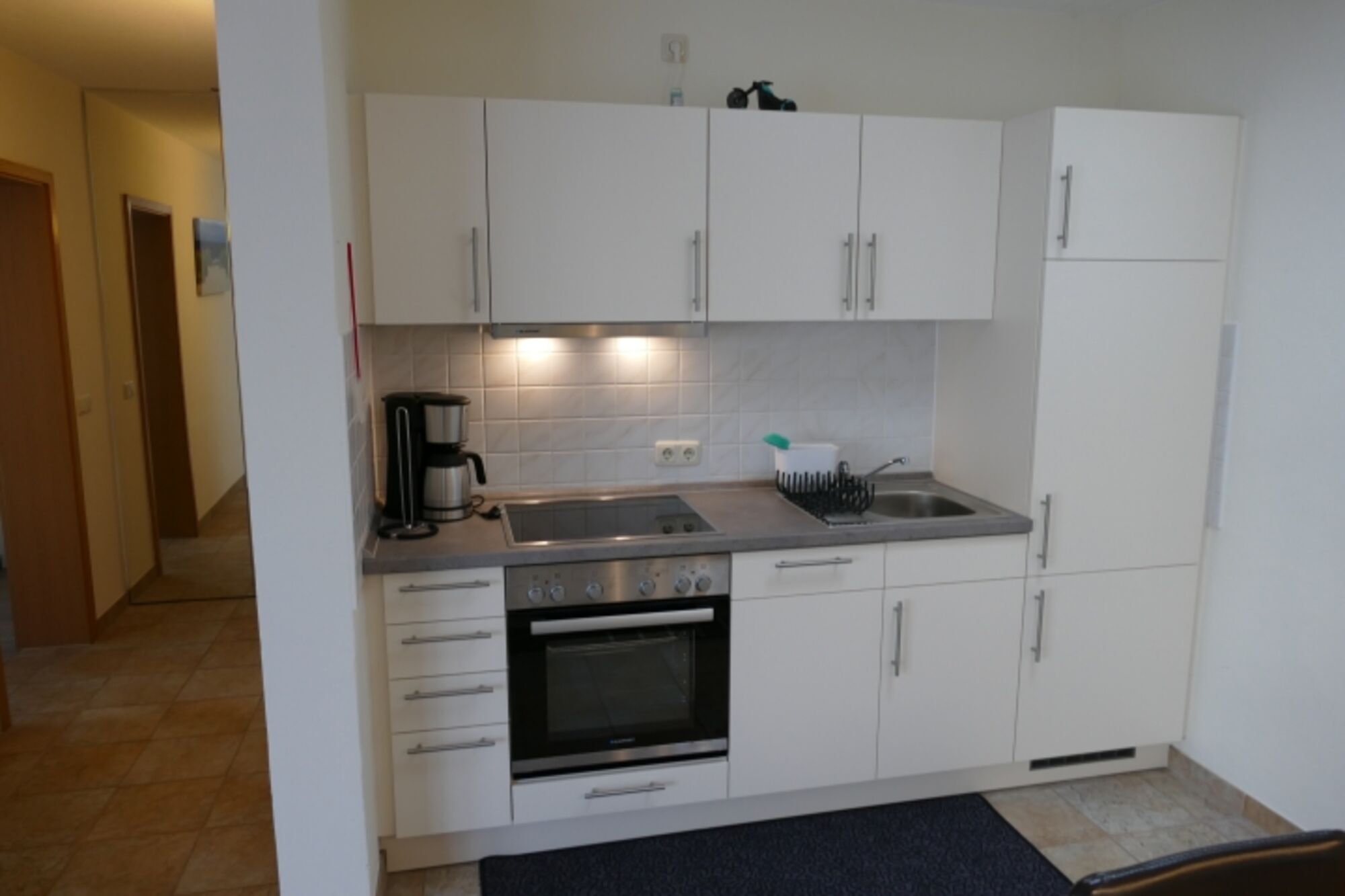4-Platten Herd, Cerankochfeld, Dunstabzugshaube, Korkenzieher / Flaschenöffner, Mülltüten, Essplatz in der Küche