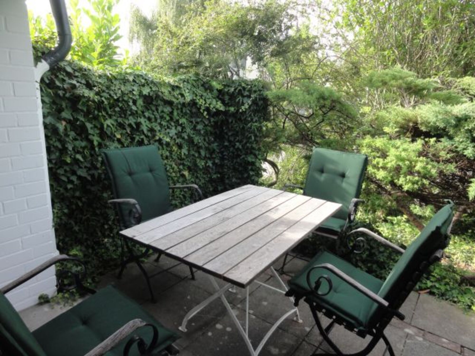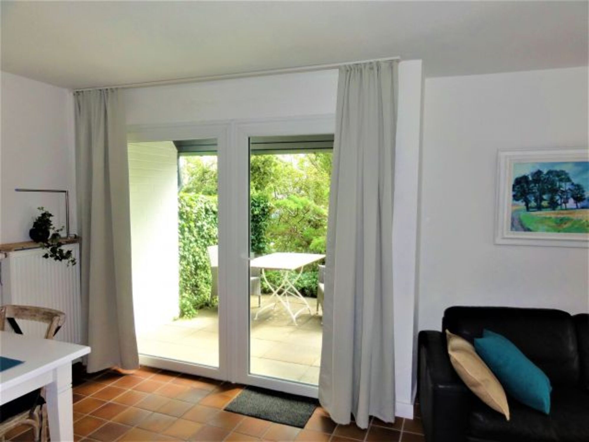 Vom Wohnzimmer aus haben Sie direkten Zugang zur Sonnenterrasse und zum komplett eingezäunten Garten.