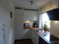 Cerankochfeld, Dunstabzugshaube, Kühlschrank mit Gefrierfach, Eierkocher, Mixer, Korkenzieher / Flaschenöffner, Mülltüten