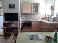 Cerankochfeld, Dunstabzugshaube, Kühlschrank mit Gefrierfach, Mixer, Korkenzieher / Flaschenöffner, Gewürze (Salz, Pfeffer, Zucker), Geschirrhandtücher, Mülltüten, Essplatz in der Küche, TV in der Küche