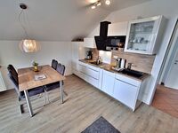 Diese schöne 2-Raum-Wohnung mit Balkon befindet sich im 3.OG (Dachgeschoss, Süd-Ost Lage) auf 45 qm Wohnfläche. Bis zum 2. OG können Sie den Fahrstuhl nutzen. Das sonnige Wohnzimmer ist mit einem Schlafsofa (160x200, 7 Zonen Matratze), Fernsehsessel, Tisch und Smart-TV ausgestattet. Das Schlafzimmer mit großem Doppelbett, Kleiderschrank und Flachbildfernseher sowie das angrenzende Bad mit WC und Dusche wird Sie zusätzlich begeistern. Die Wohnung verfügt über eine moderne Wohnküche, ausgestattet mit den erforderlichen Utensilien, Kühlschrank, Spülmaschine, Mikrowelle mit Grill, Kaffeemaschine und Wasserkocher.