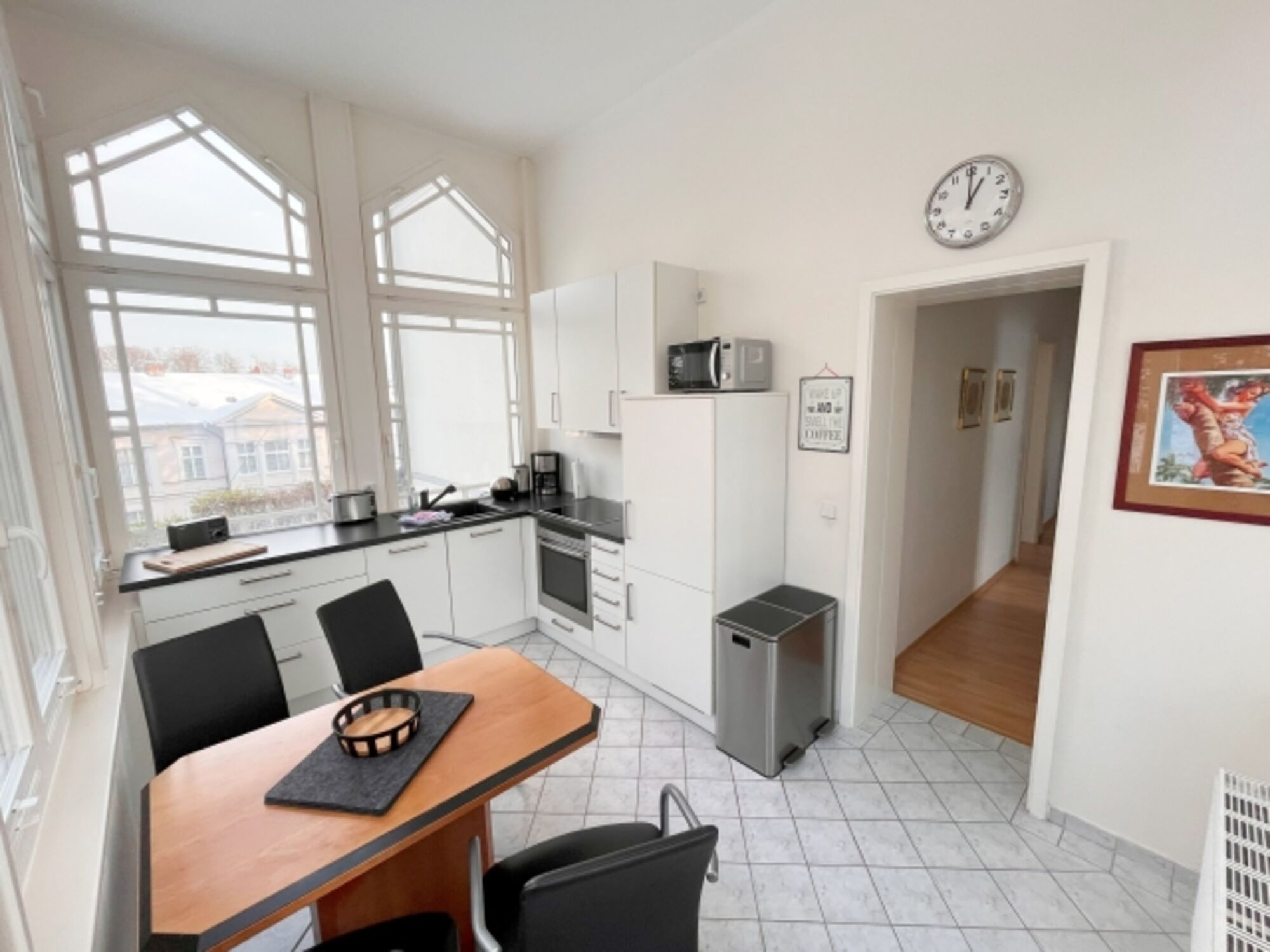 Diese charmante, ca. 61 m² große Ferienwohnung im Hochparterre einer stilvollen Bädervilla bietet Ihnen ein komfortables Zuhause auf Zeit im Seebad Heringsdorf auf Usedom - ideal für 2 Personen.