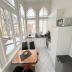 Der großzügige Wohnbereich lädt mit einem bequemen Sofa, einem Flachbild-TV und einem praktischen Schreibtisch zum Entspannen oder Arbeiten ein. Die voll ausgestattete Küche befindet sich in der hellen Veranda und bietet alles, was Sie für Ihre Selbstverpflegung benötigen: