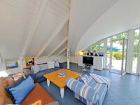 Für Ihre Unterhaltung stehen Ihnen ein Flachbild-TV, Radio, CD- und DVD-Player zur Verfügung. Eine Doppelbettschlafcouch komplettiert die Ausstattung des großzügigen Wohnbereichs. Die offene Küche ist mit allem ausgestattet, was Sie benötigen, darunter Ceranherd, Backofen, Geschirrspüler, Kaffeemaschine, Wasserkocher, Toaster und Mikrowelle.