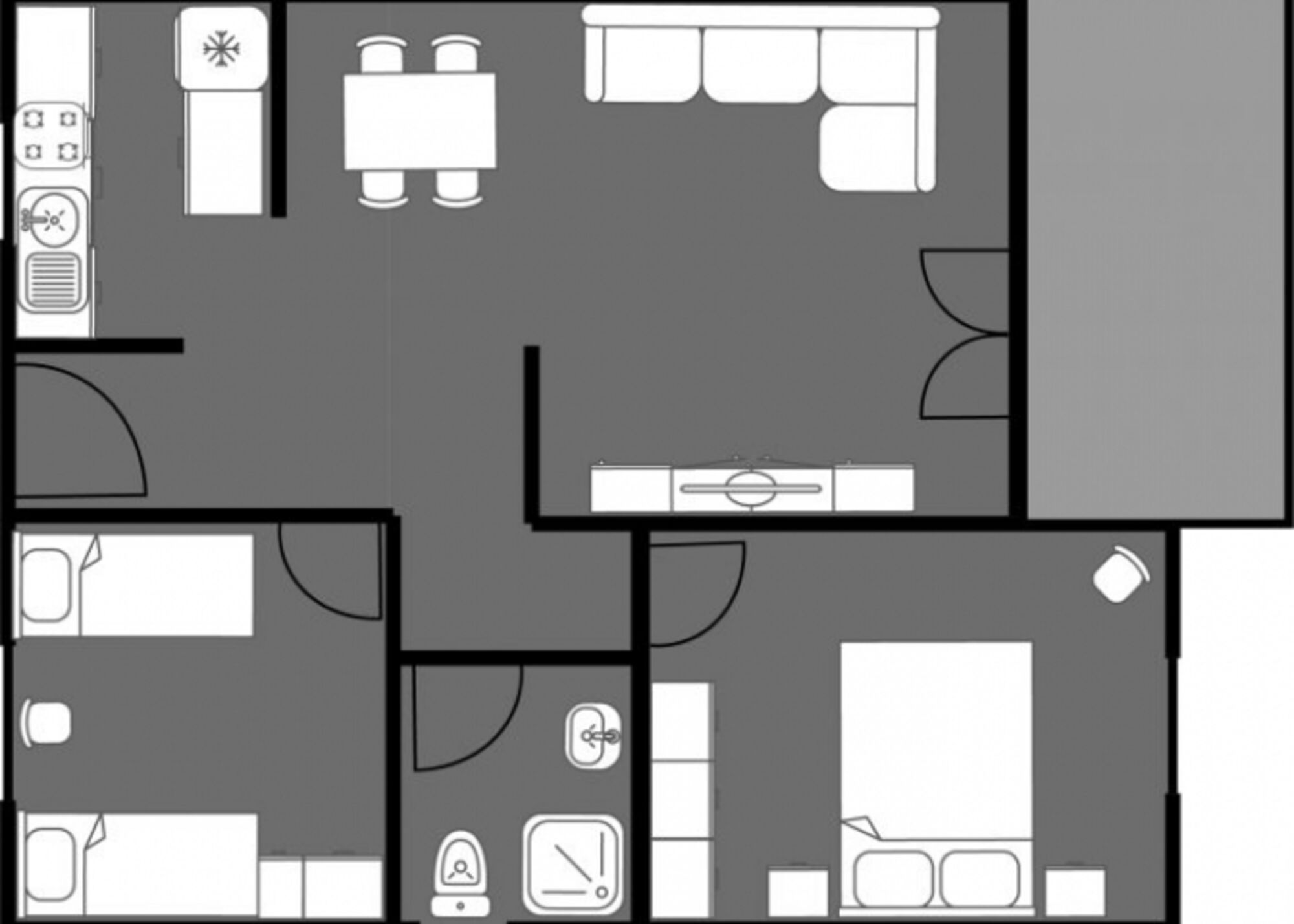 4-Platten Herd, Cerankochfeld, Kühlschrank mit Gefrierfach, Eierkocher, Waffeleisen, Korkenzieher / Flaschenöffner, Gewürze (Salz, Pfeffer, Zucker), Öl / Essig, Geschirrhandtücher, Mülltüten