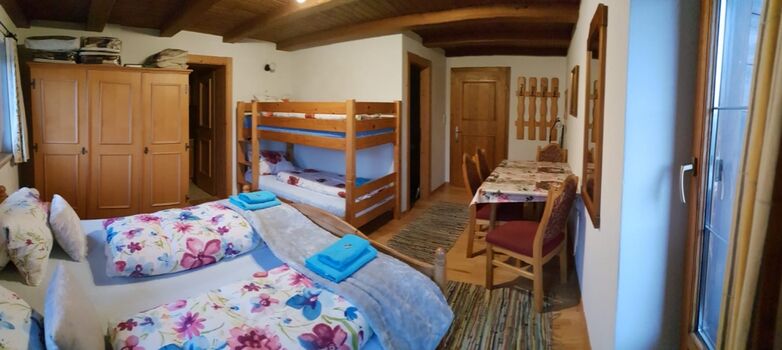 Unsere Ferienwohnung Alpbachblick ist mit 35 m² nicht groß aber gemütlich für 2-4 Personen (2 Erwachsene + 2 kleinere Kinder - Ehebett und Stockbett) ausgestattet. Ja es können auch Erwachsene auf dem Stockbett schlafen, aber ist es nicht so be, befindet sich im 1. Stock. Sie besteht aus einem Schlaf-Wohnbereich, einer Küche und einem Badezimmer mit WC. Die Küche verfügt über einen Kühlschrank mit Tiefkühlfach, Herd mit Backrohr, Kaffeemaschine, Spülmaschine. FeWo hat auch Balkonzugang. WiFi gratis. Parken kann man neben dem Haus. Nichtraucherwohnung (Rauchen - nur auf dem Balkon). Skischuhtrockner im Haus. Frühstückbestellung möglich (momentan Frühstück nicht möglich - ich aktualisiere es dann, wenn wieder möglich) .