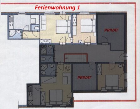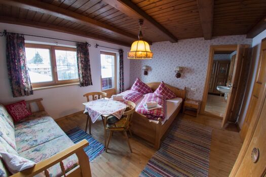 Unsere Ferienwohnung Galtenbergblick ist gemütlich und vollkommen für 2-4 (max. 5) Personen geeignet und befindet sich im 1. Stock. Sie besteht aus 2 Schalfzimmern, einer Küche und einem Badezimmer und WC.