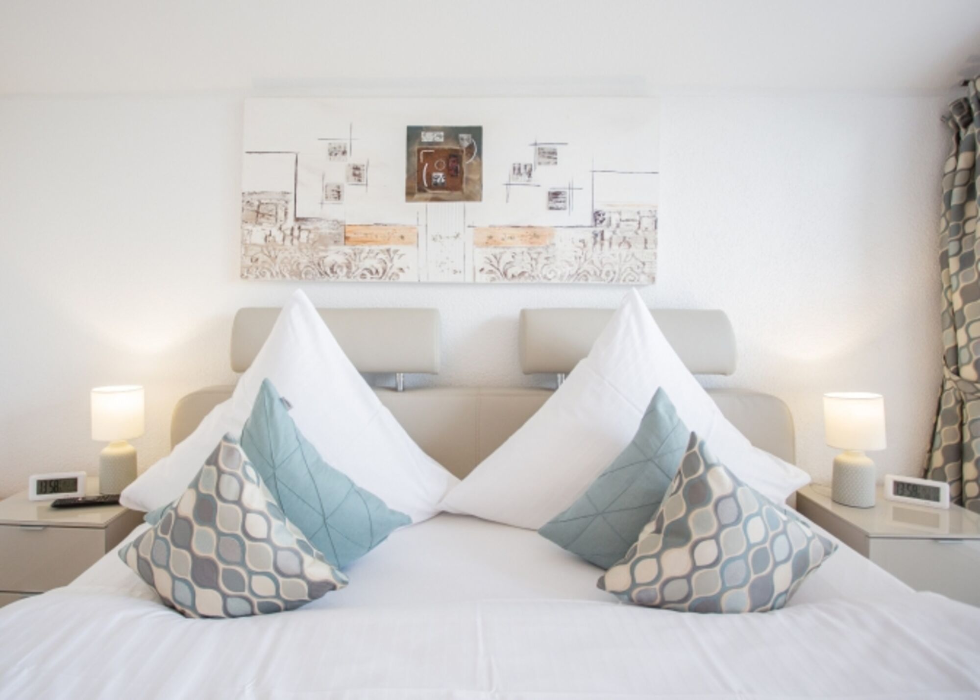 TV/Sat Doppelbett 1,80 x 2,00m, Boxspringbett, Wecker, Leselampe am Bett