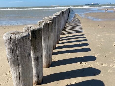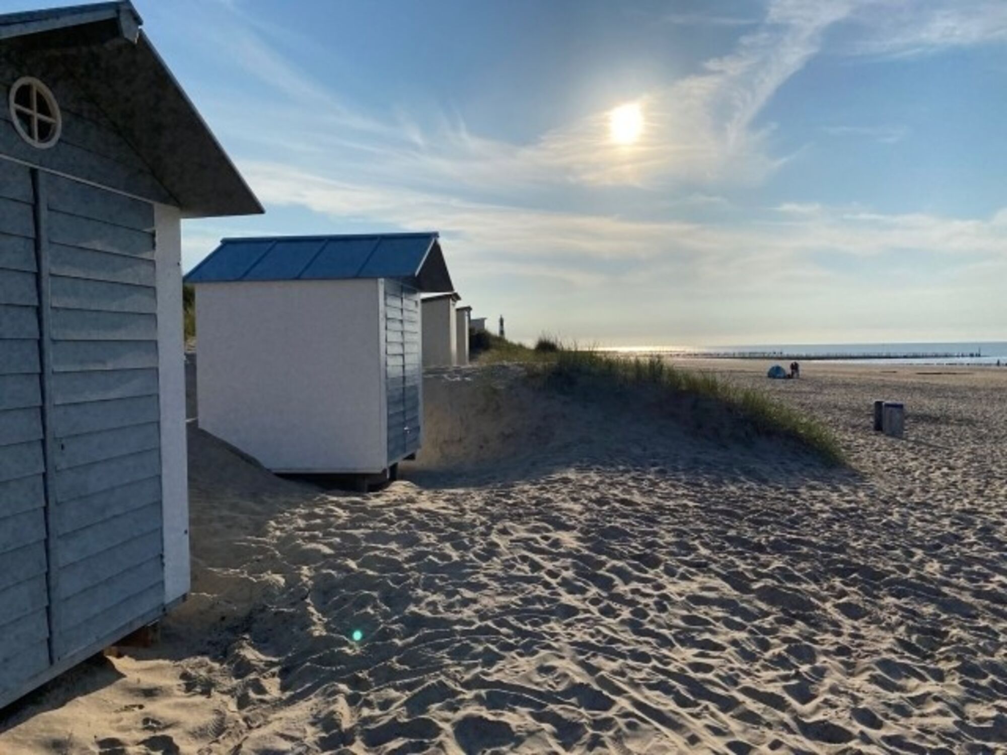 Der breite und sehr lange Strand ist für Familien, Kinder und auch Hunde gleichermaßen begeisternswert. Bei Flut ist der Strand bereits sehr breit, bei Ebbe ist der Strand dann etwa 3x so breit. Er ist mehrere Kilometer lang und lädt ein zu langen Spaziergängen, zum Joggen, zum Spielen mit dem Hund, zum Sandburgbauen mit den Kindern, zum Sonnen, zum Baden, zum Genießen und Verweilen. Auf dem Strand befinden sich in ca. 300m Abständen jeweils Restaurants und Cafés als Pfahlbauten, in die es sich einzukehren lohnt. Ein Sundowner ist hier perfekt zu erleben, denn der Strand öffnet sich in Richtung Westen. Ein in der Nähe des Chalets stehender, sehr fotogener, schwarz-weiss gestreifter Leuchtturm ist nicht nur für die Seefahrer ein guter Orientierungspunkt, sondern auch bei Spaziergängen und Fahrradtouren hilfreich.
