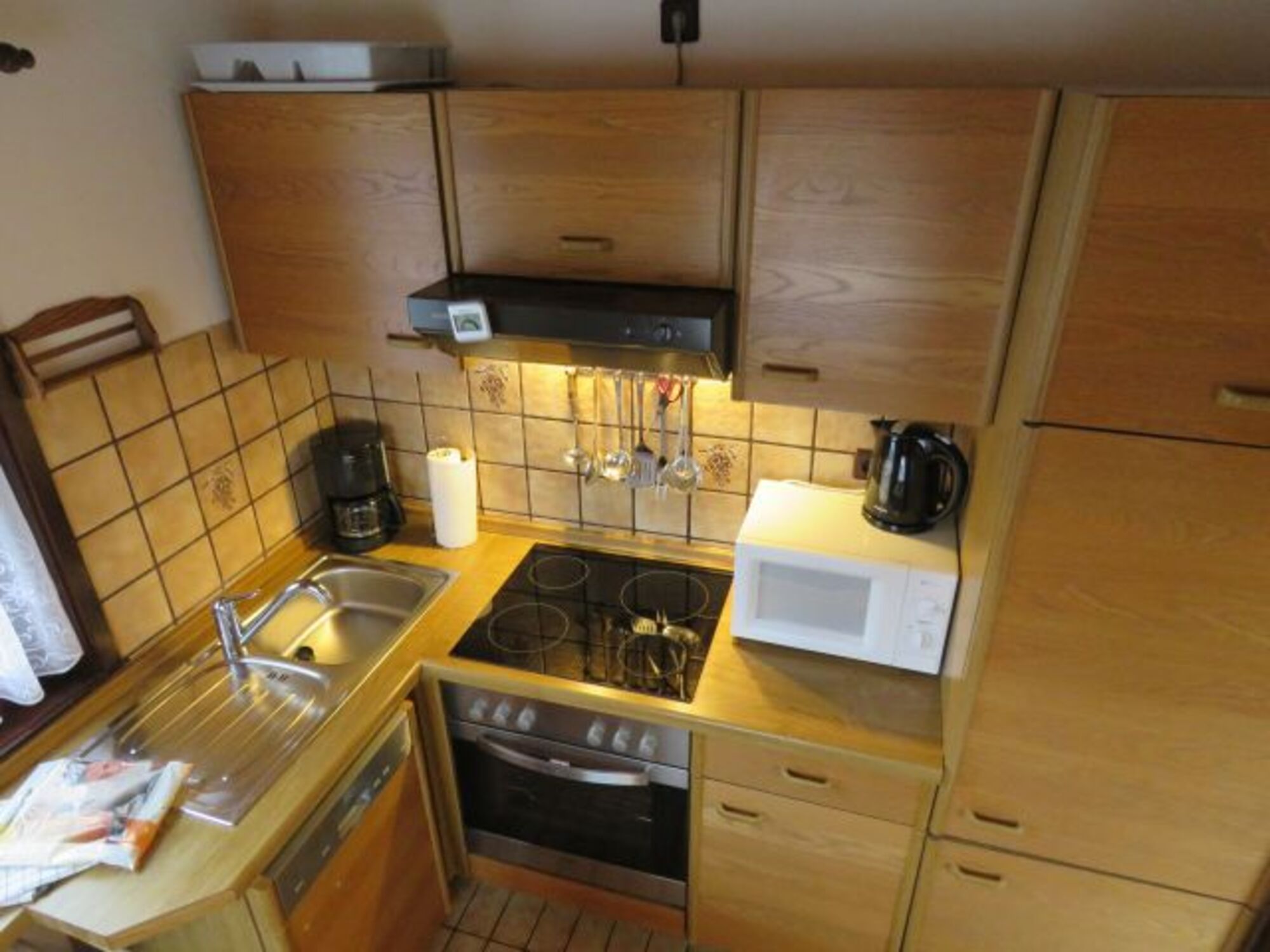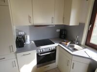4-Platten Herd, Cerankochfeld, Dunstabzugshaube, Kühlschrank mit Gefrierfach, Korkenzieher / Flaschenöffner, Mülltüten, Essplatz in der Küche