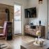 Gemütlicher Kamin: Der perfekte Ort, um sich an kühleren Abenden mit einem Buch oder einem Glas Wein aufzuwärmen.