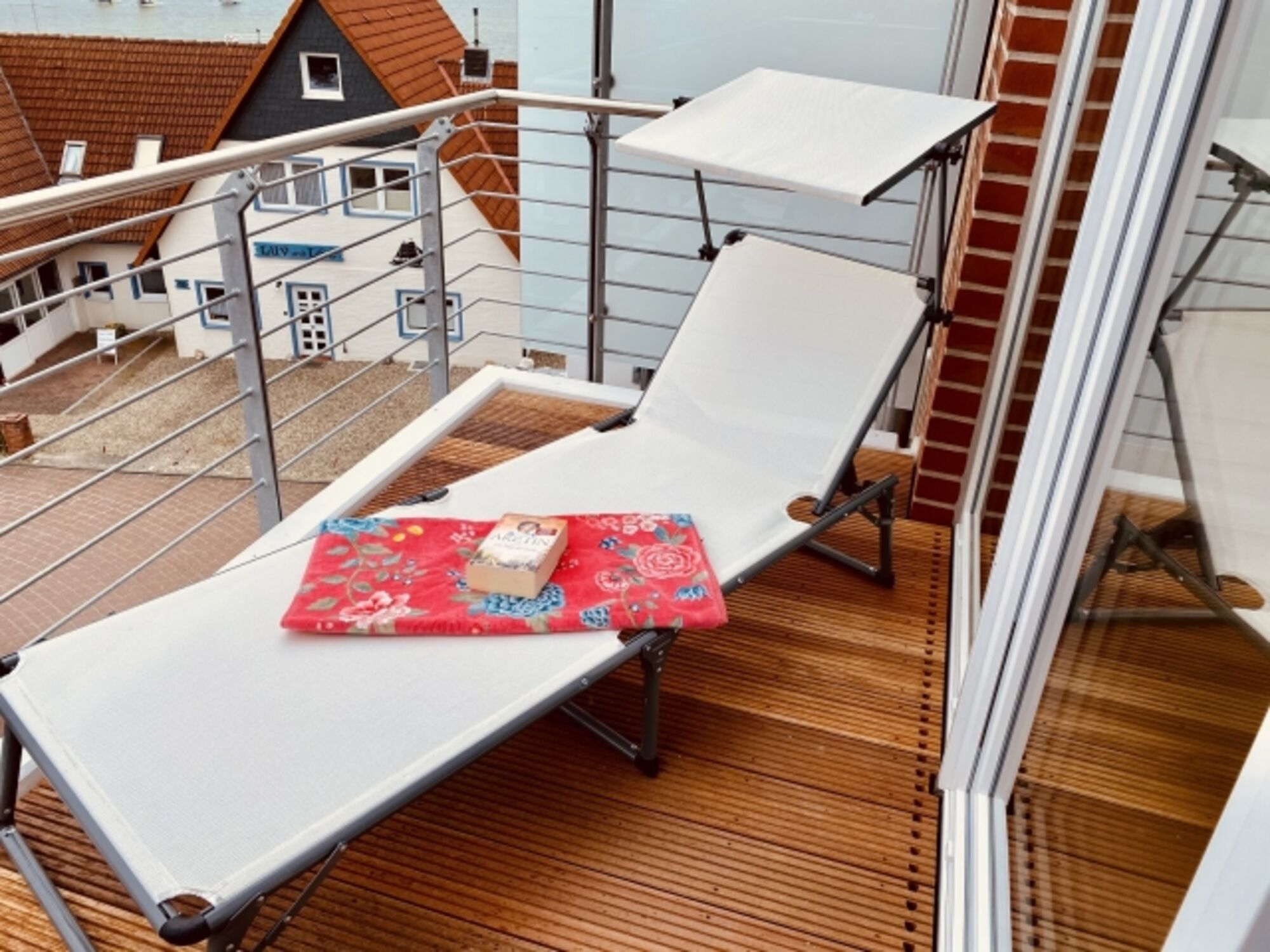 Direkt vom Wohnraum aus kann der schöne Balkon der Wohnung betreten werden. Hier kann nicht nur die Aussicht auf die mal ruhige, mal schäumende See genossen werden, sondern auch ein fantastischer Panoramablick über die ganze Bucht. Durch seine Lage bietet der Außenbereich pünktlich zum Frühstück Sonne, die sich den ganzen Tag über hält.