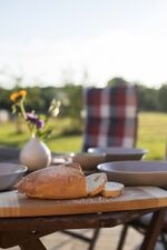 Ferienhaus im Grünen mit Liebe zum Detail ausgebaut (56 qm), mit Kamin, W-Lan und großer Terrasse mit freiem Blick über Felder, Pferdekoppeln und Wald - kein Feriendorf-Ghetto ;-)