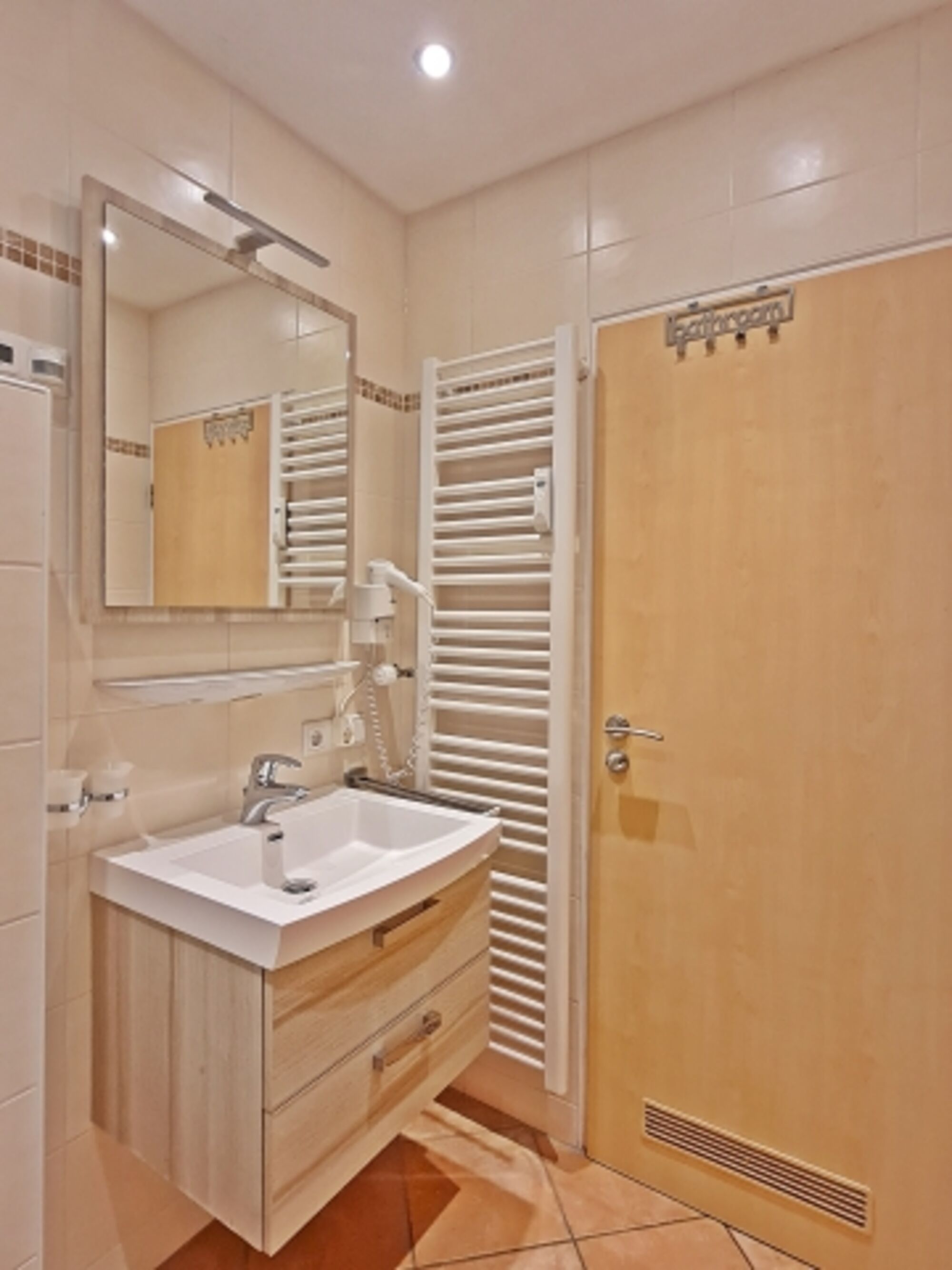 Die Zufriedenheit unserer Gäste liegt uns sehr am Herzen. Daher haben wir unsere Ferienwohnung in den Jahren 2023 und 2024 zu großen Teilen neu renoviert und sehr hochwertig ausgestattet, u. a. mit einem komplett neuen Badezimmer mit einer großen, fast bodentiefen Dusche mit "klassischer" Handbrause und zusätzlich einer tropischen Regenschauerdusche, einem hochwertigen Sauna-Infrarotpaneel eines deutschen Premiumherstellers mit einer individuellen Steuerungsmöglichkeit der Intensität (sehr entspannend übrigens gerade bei Muskelverspannungen oder auch als wohltuende Wellnessanwendung direkt in Ihrer eigenen Ferienwohnung), einem von Ihnen je nach Geschmack steuer- und dimmbaren Farblichtkonzept, einem besonderen Fuß-SPA (kombiniertes Fuß-Dampfbad und -Massagegerät zur Reduzierung von Schwellungen und zum Abbau von Stress), einem Aromatherapie-Diffuser (für Entspannungsmomente mit ätherischen Ölen; z. B. in Kombination mit einer Infrarotanwendung und einem Fuß-Dampfbad), einer eigenen kleinen Kneipp-Anlage, einem Wellness-Radio, einer Handtuchheizung sowie einem fest installierten Fön.