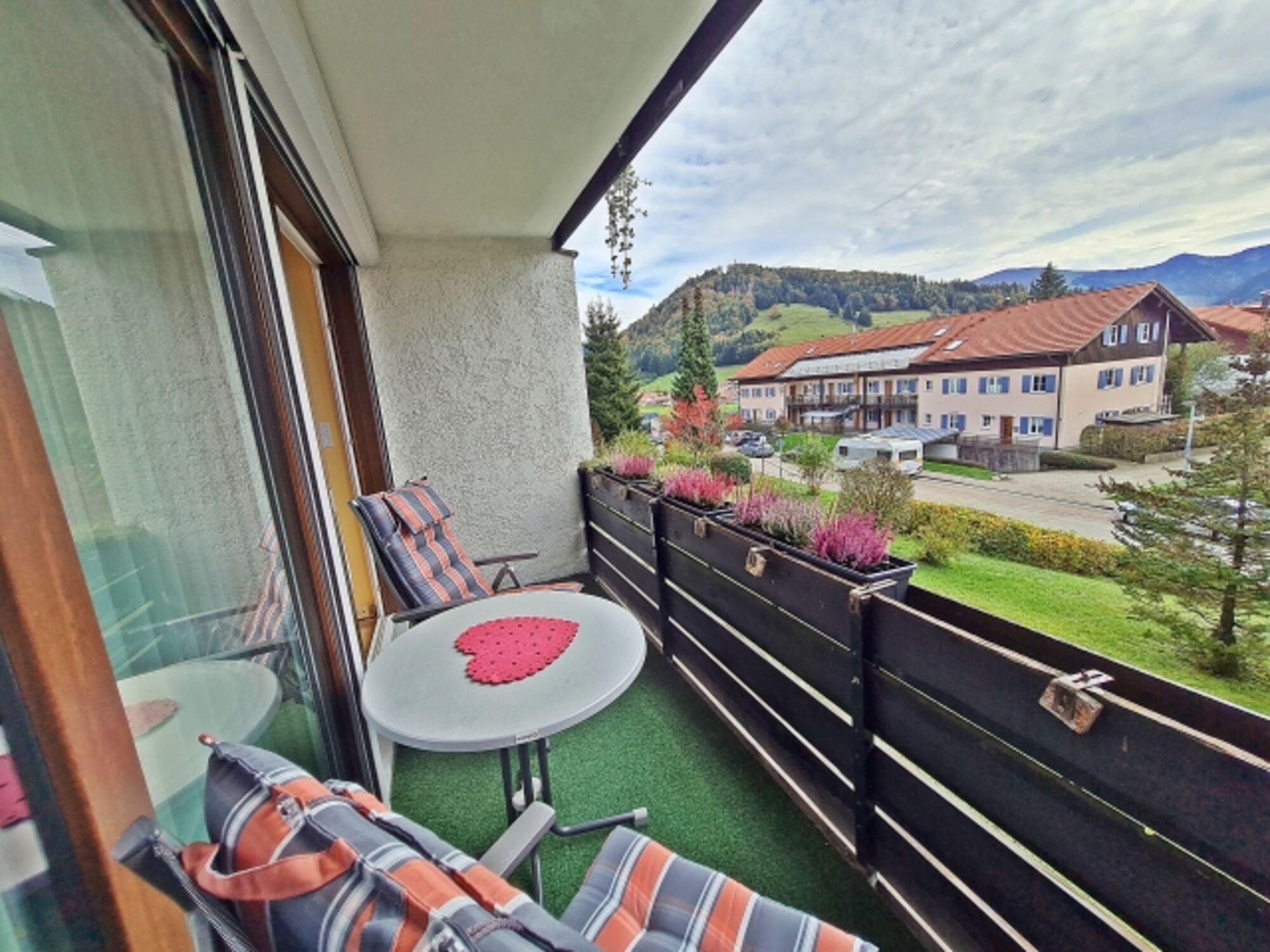 Neben der komfortablen und gemütlichen Einrichtung, hat unsere Ferienwohnung auch eine sehr schöne Lage: so können Sie z.B. auf den Staufner Berg und den Hochgrat schauen.