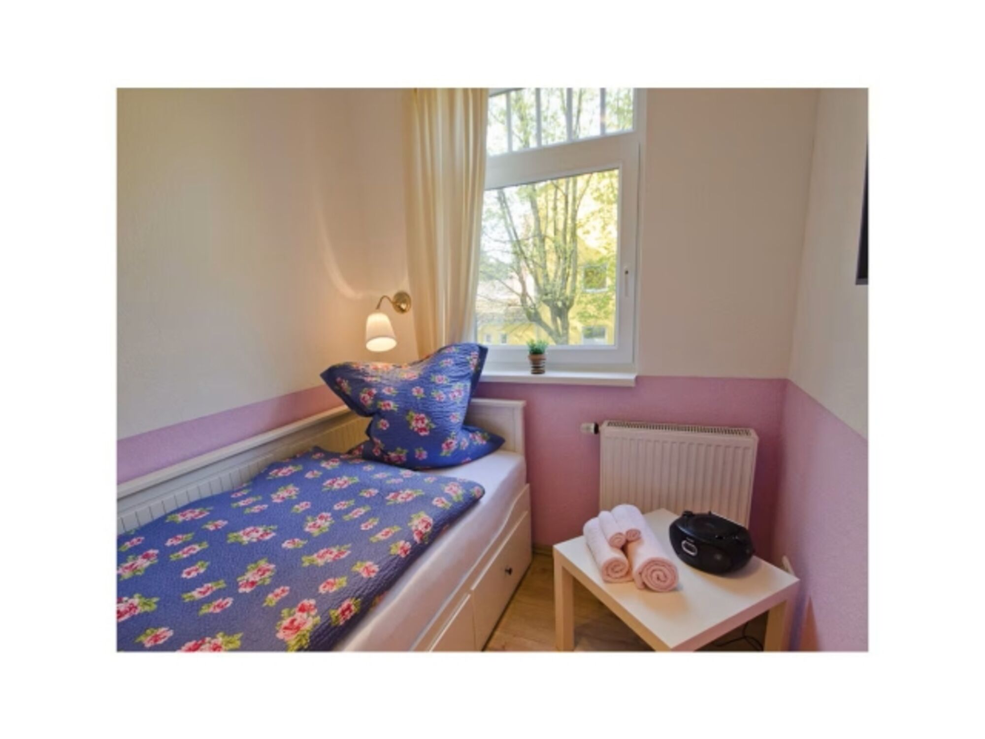 Einzelbett, Leselampe am Bett