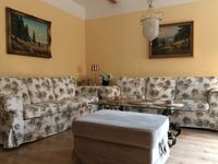 Diese sehr geräumige Wohnung bietet Platz zum Wohlfühlen für alle ... zum geselligen Zusammen-Sitzen ebenso wie zum Mal-Zurück-Ziehen. Es gibt ein gemütliches Wohnzimmer mit großem Flachbildschirm (Kabel-Fernsehen), eine voll ausgestattete Wohnküche mit 6er-Tisch, Geschirrspüler, Elektroherd/Backofen/Cerankochfeld und Kühlschrank mit Gefrierfach. In der Wohnung (EG) befinden sich weiterhin 2 Doppelzimmer (jeweils mit Doppel-Boxspring-Bett, Flachbildschirm-Fernseher und Radiowecker), 2 Einzelzimmer (jeweils mit Einzelbett und Radio/CD-Player) und 1 Badezimmer mit Regendusche und Doppelwaschtisch.