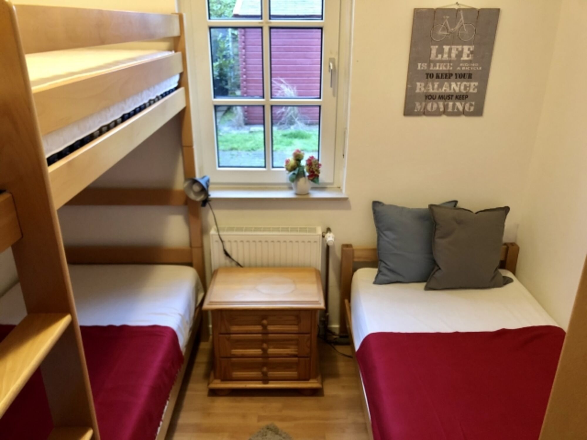 Mit 2 Schlafzimmern (eines mit einem Doppelbett, eines mit Etagenbett und Einzelbett), einem großen Wohn- und Esszimmer, einem kleinen Duschbad und einer vollständig eingerichteten Küche, bietet das Haus optimal Platz für 2 Erwachsene und 2 Kinder.