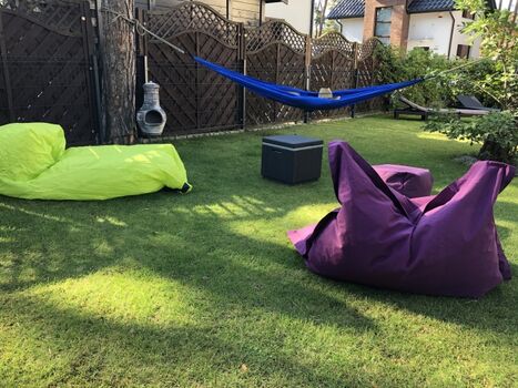Entspanne im Garten bei Spiel und Spaß mit den Kindern oder/und dem vierbeinigen Freund, bei einem guten Buch auf einer der bequemen Gartenliegen oder in der Hängematte.