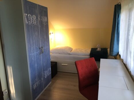 Zimmer mit 2 Einzelbetten, Kleiderschrank und Schreibtisch Einzelbett, Leselampe am Bett